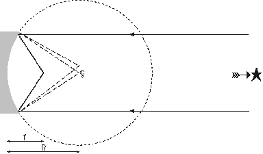 - Indien de zon schijnt kan men echter rechtstreeks de brand-puntsafstand bepalen: maak de spiegel nat (Voeg wat glycerine toe om langer nat te houden) en richt hem naar de zon. Weerkaats de zon op een muur, en varieer de afstand tot de muur tot de scherpste (en kleinste) afbeelding van de zon bereikt wordt. Deze afstand is heel exact de brandpuntsafstand.
