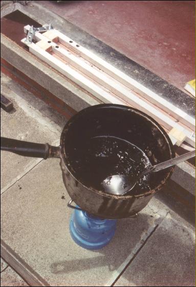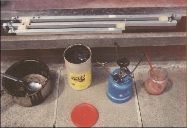 Laat me U alvast verwittigen: smeltende pek verspreidt een doordringende geur, die door Uw medebewoners als hinderlijk zal ervaren worden. Voor de amateur-telescoop-bouwer daarentegen is deze geur even aanlokkelijk als het duurste Parijse parfum: het luidt immers de laatste fase in van het spiegel