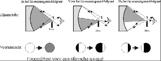 Wanneer de spiegel voldoende gepolijst is, wordt het tijd om ook de vormnauwkeurigheid te gaan testen. Pas als de spiegel voldoende nauwkeurig is, kunnen we overstappen naar de volgende fase (het paraboliseren). Er zijn verschillende mogelijke testmethodes (Ronchi-test, Caustic Test, Wire Test,...) maar de klassieker is wel de Foucaulttest.