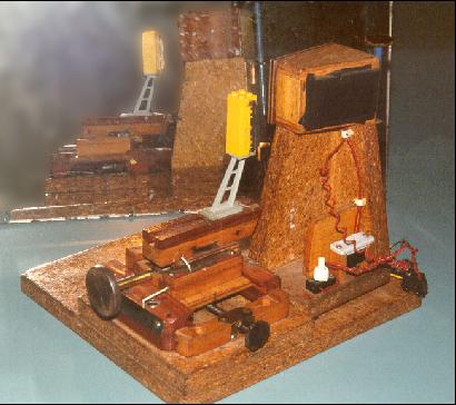 het rechtergedeelte omvat het gloeilampje met daarvoor een spleetje het linkergedeelte bestaat uit het beweeglijk opgestelde scheermesje. Het kan zowel voorwaarts-achterwaarts bewegen om het juiste krommingsmiddelpunt te vinden (waarbij die afstand nauwkeurig kan afgelezen worden), als zijwaarts om doorheen de lichtbundel te snijden.
