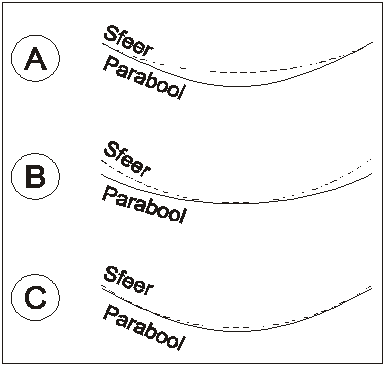 Door welbepaalde slijpslagen toe te passen, en eventueel een doelbewust vervormde pekbodem te gebruiken, zullen we nu de spiegelvorm lichtjes maar doordacht veranderen, tot we bij de gewenste paraboolvorm uitkomen. Omdat paraboliseren hetzelfde